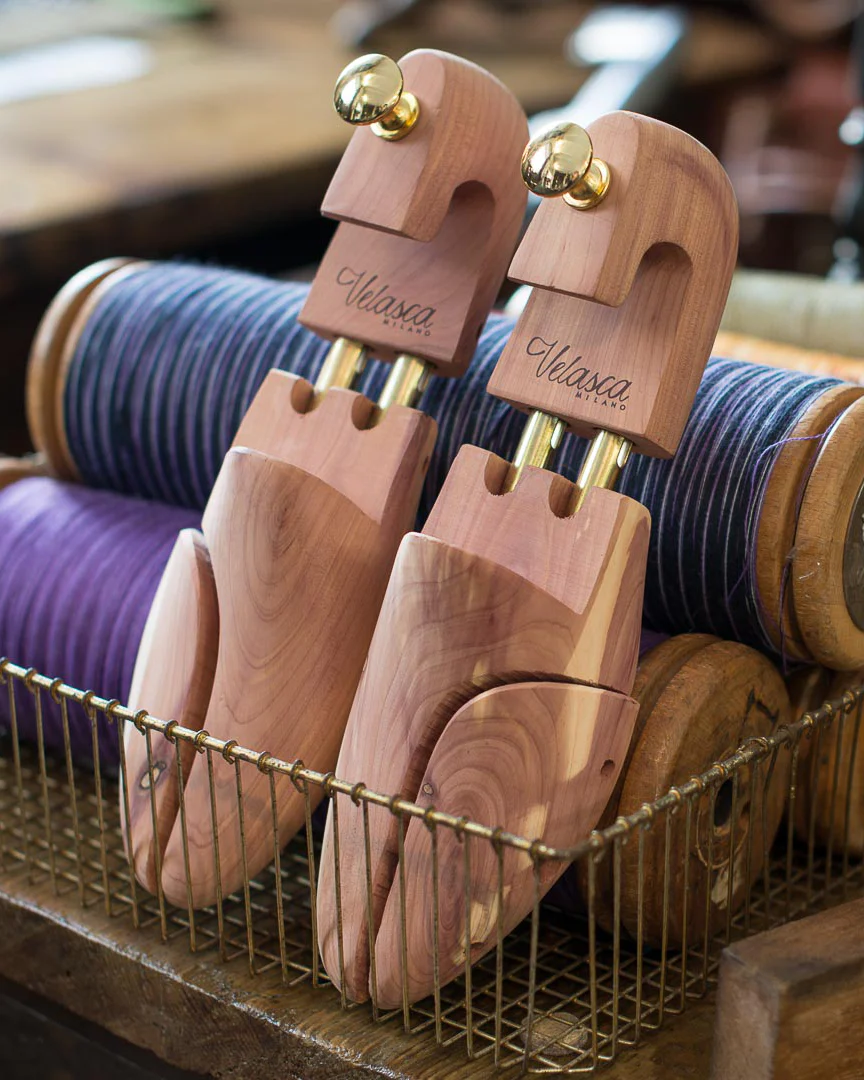 âGamba de legnâ is our shoe tree in cedar wood, made for prolonging the life of your shoes. Technically speaking, theyâre called âshapesâ and you insert them into your shoes at the end of the day. We chose cedar woodâs aromatic properties to look after your shoes.