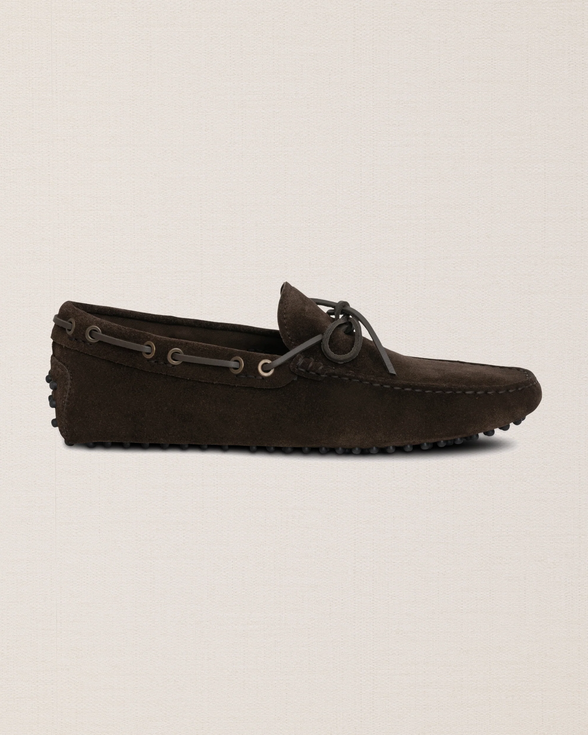 It's the the most versatile summer Moccasin in our collection. With its waterproof suede leather and studded rubber sole, it’s a dark brown shoe with same color laces designed for taking it easy on weekends, or casually strolling through the city in the evening. These Moccasins are made using the tubular technique to give you all the softness and flexibility a man needs.