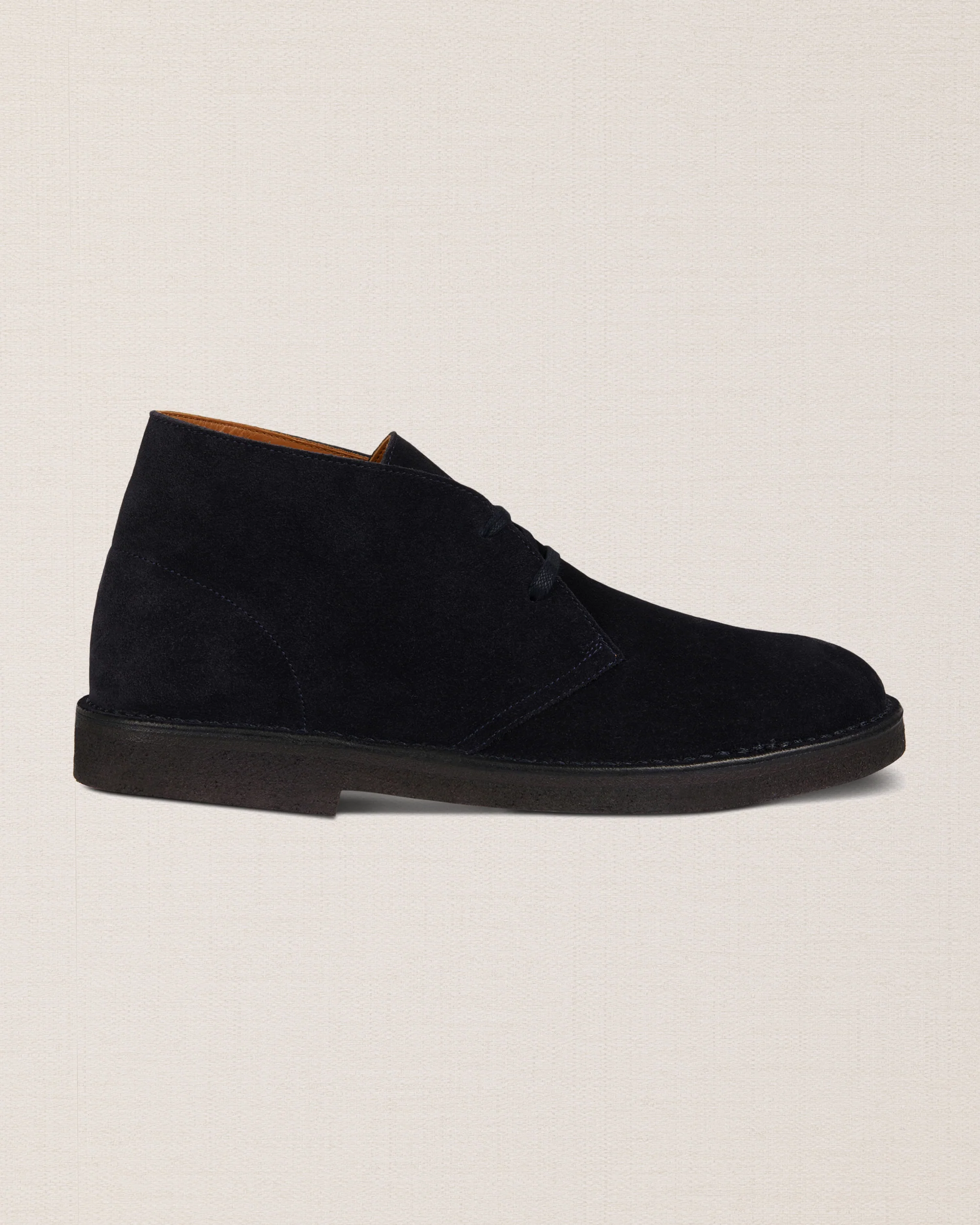 They are the most casual Desert Boots of our collection. When we designed them together with our artisans, we imagined them on creative people’s feet from all around the world. With their suede leather and a para rubber sole, they’re the blue shoes for the fall days. Match them with a pair of beige chinos.