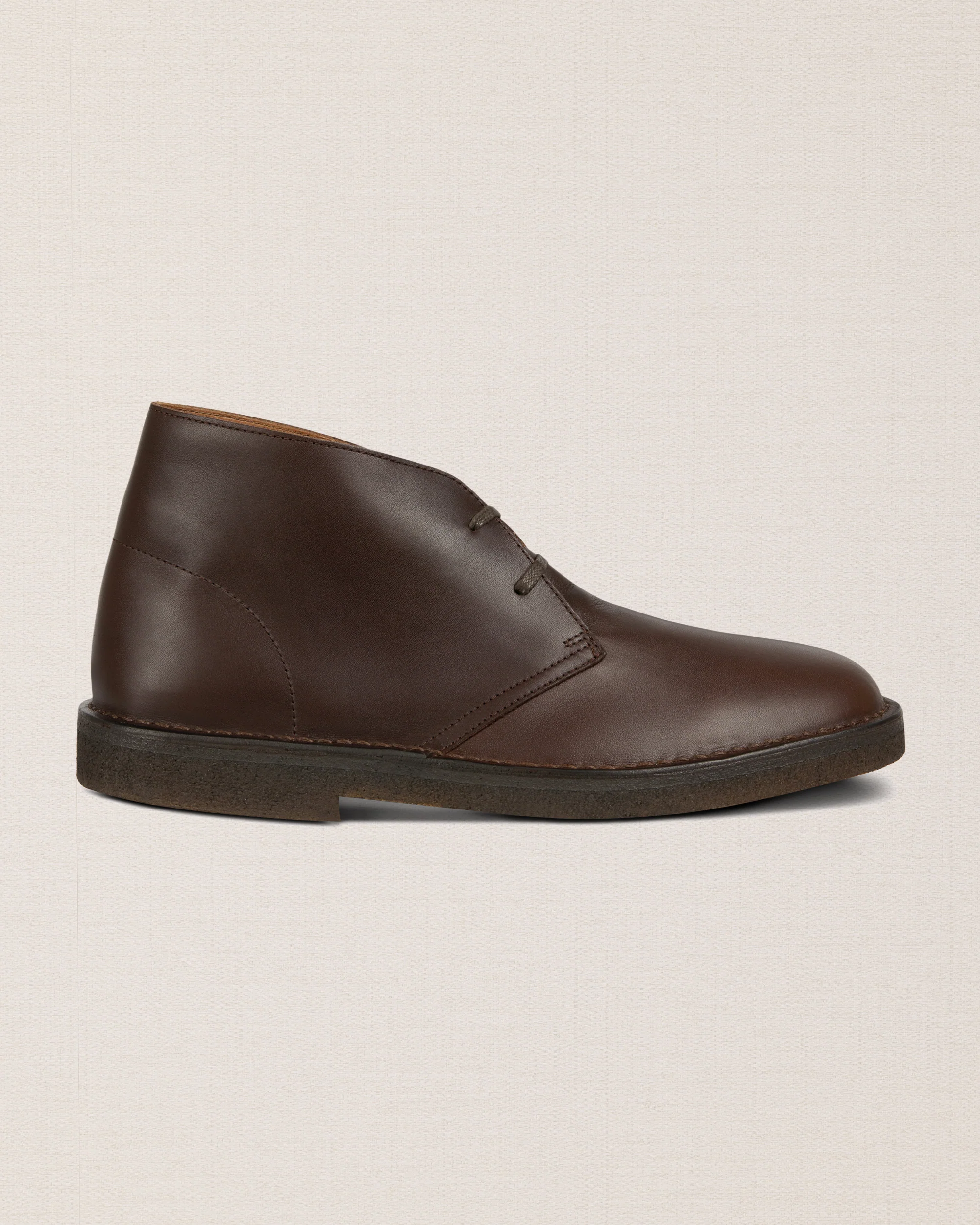 The smooth leather Desert Boot, simple but unforgettable. Hand-stitched and with Para rubber soles, it coils around your ankle gently and braves even the rainiest days. Wear them with denim or corduroy. Made in Montegranaro, Italy
